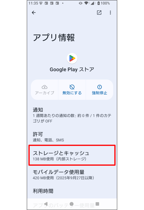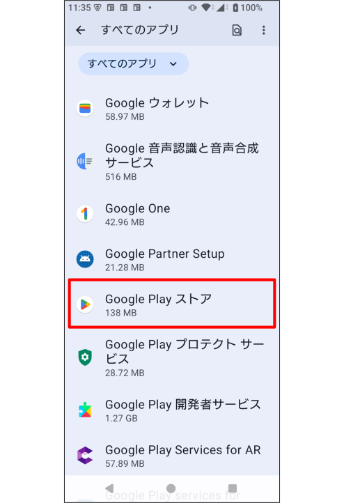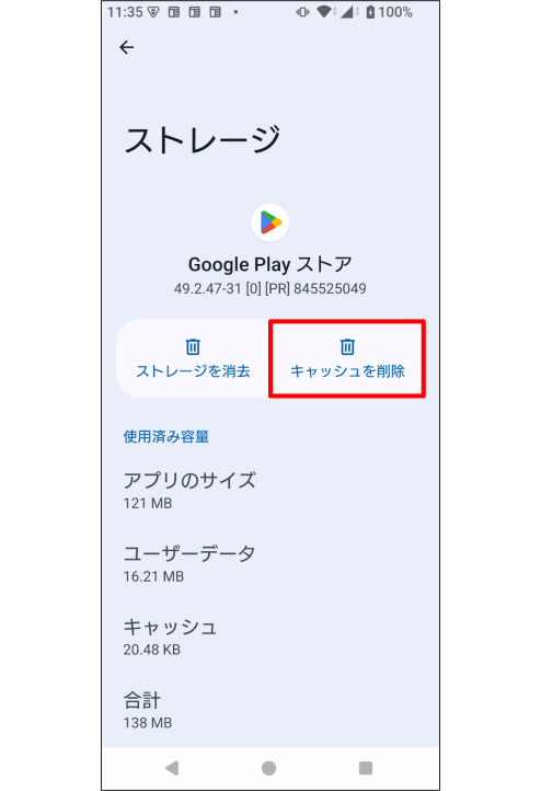 ※操作画面は、「Google Play ストア」アプリのキャッシュ削除を例にご説明しております。
