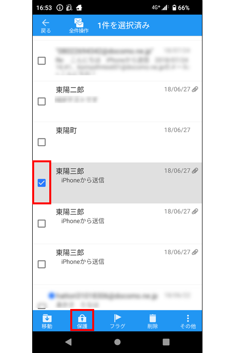 →該当メールを選択し「保護」