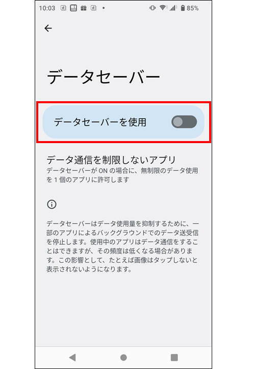 (ONにするとアプリのバックグラウンドでのデータ使用が制限され、OFFにすると制限が解除されます。)