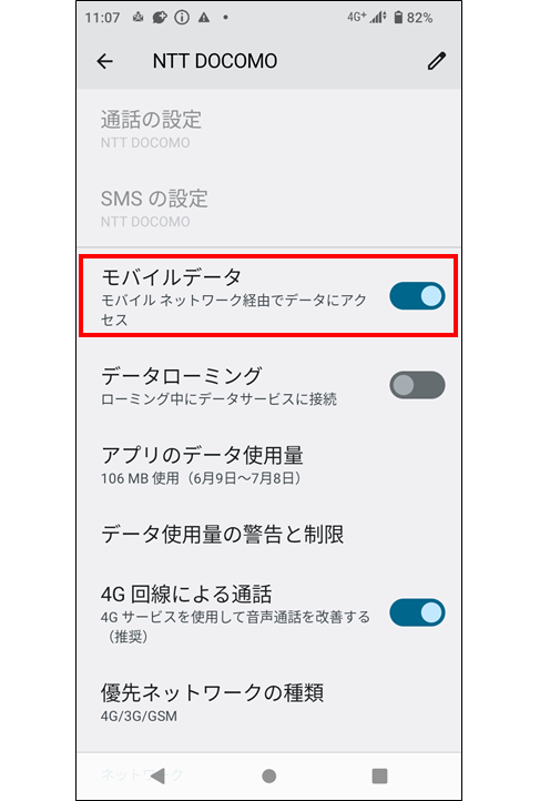 データ通信の設定が「OFF」になっており、インターネットが利用できない状態の可能性があります。
