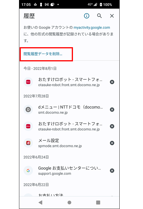 →「閲覧データを削除」をタップ