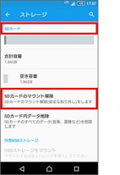 ※「SDカードをマウントする」と表示されている場合は、SDカードが認識されていない(装着されていないか、マウント解除されている)状態です。