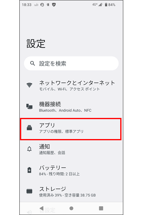 ホーム画面にて、アプリボタンをタップ →「設定」 →「アプリ」 →「XX個のアプリをすべて表示」をタップ →終了したいアプリを選択 →「強制停止」 →画面の内容を確認して「OK」をタップ