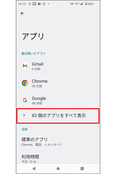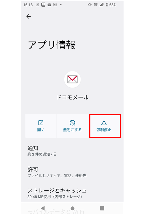 ※「強制停止」ボタンが表示されていないアプリは強制停止できません。 ※操作画面は、Android 12(SO-41B)を参考に掲載しております。ご利用の機種やOSのバージョンにより表示画面や文言が大きく異なる場合があります。