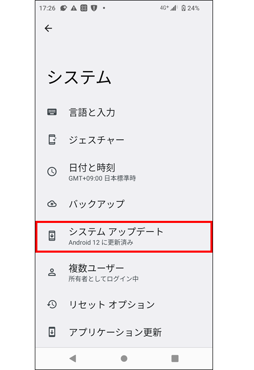 ※ 「ソフトウェア更新」と「Androidバージョンアップ」とで、それぞれのメニューから実施が必要な場合があります。