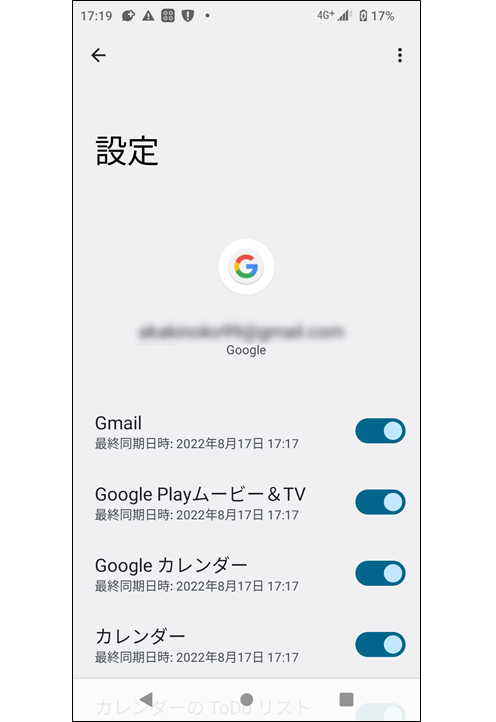 →「アカウントの同期」をタップし、同期したい項目を選択してください。