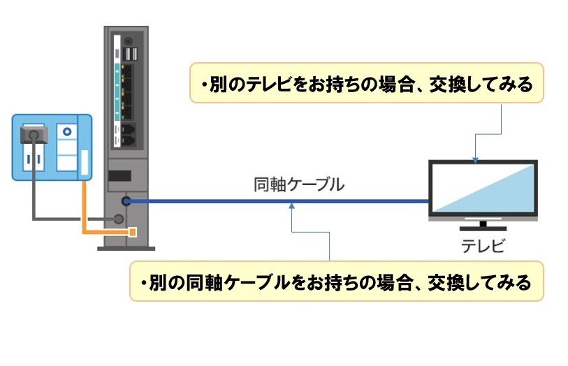 同軸ケーブル断線・端子部の破損や、テレビの故障により、光テレビオプションが視聴できなくなる場合があります。