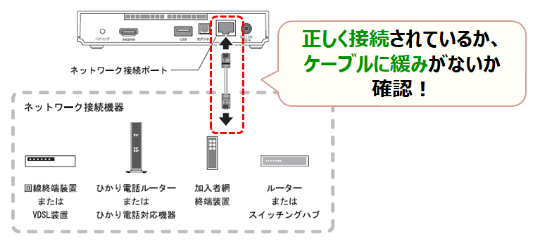 本商品とネットワーク接続機器の接続を確認し、本商品からAC アダプタを抜いて、再度、本商品にACアダプタを接続してください。