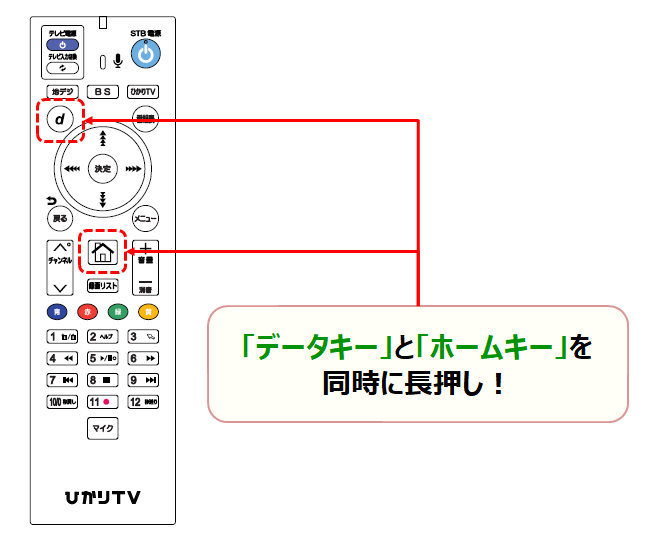 ペアリングを行うには、リモコンの[データキー]と[ホームキー]を同時に長押ししてください。