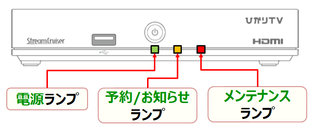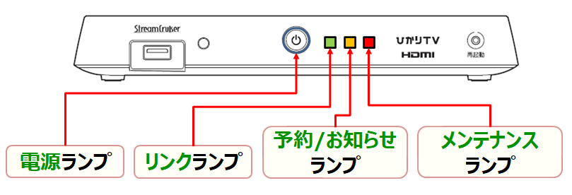 ご利用している機器のチューナー本体の前面にある3つの「ランプ」の状態を選択してください。