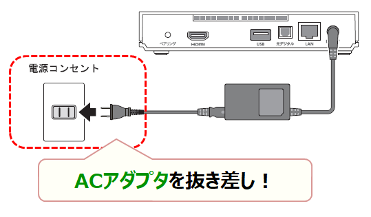■また、チューナー本体からAC アダプタを抜き差ししてください。