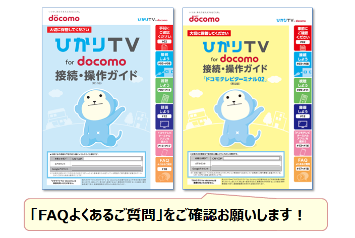 また、ひかりTV for docomo公式ホームページにも、よくあるご質問をご用意していますので、併せてご確認ください。