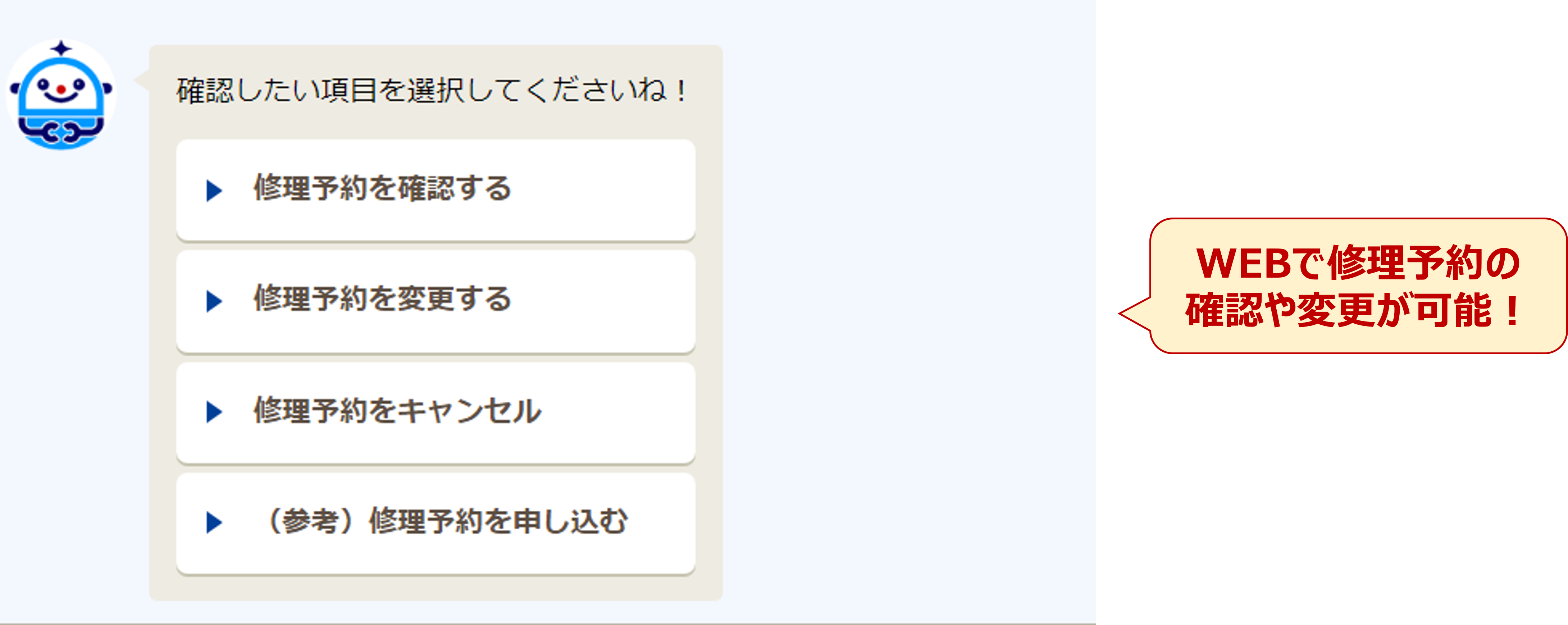故障修理の予約状況確認、日時変更やキャンセルをご案内しています!