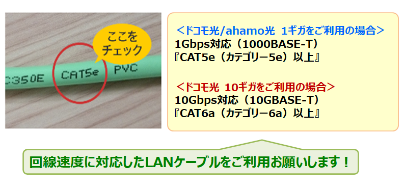 ご利用の回線速度に対応したLANケーブルをお使いいただくことで通信速度が改善されることがあります。