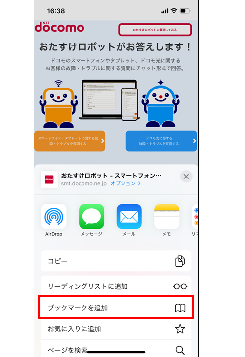 ④「場所」の下にあるお気に入りをタップすると、「お気に入り」「ブックマーク」「新規フォルダ」から、ブックマークの保存先を選択できます。
