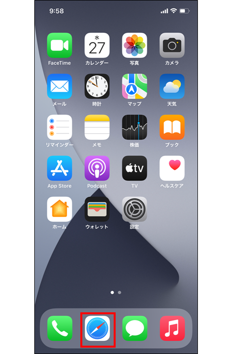 ①ホーム画面からSafariをタップして、ブラウザを立ち上げます。