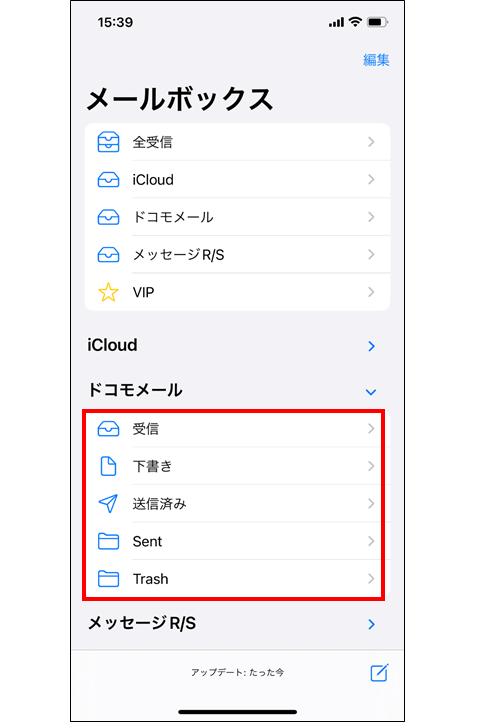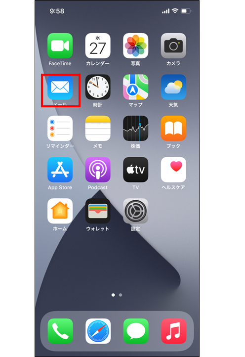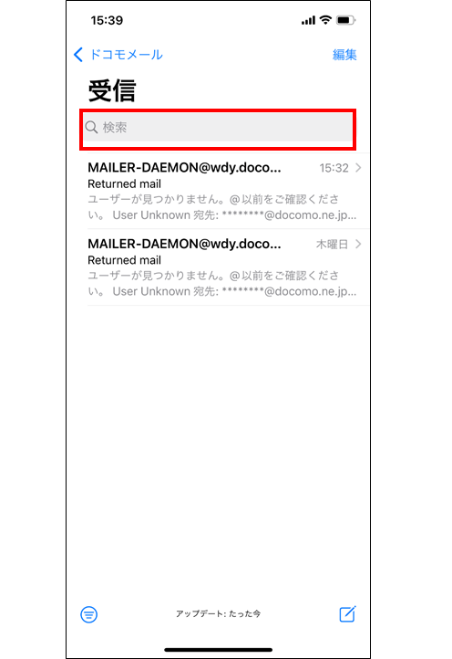 ※「検索」バーが表示されない場合、受信メール一覧を下にフリックすると表示されます。 ※操作画面は、iOS 15.4(iPhone 12)を参考に掲載しております。ご利用の機種やOSのバージョンにより表示画面や文言が大きく異なる場合があります。