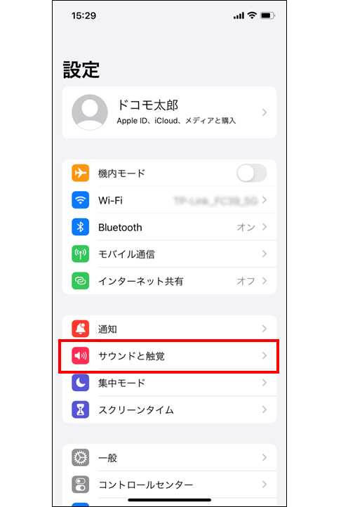 ①サイレントスイッチがオフの状態で、「設定」画面を開く